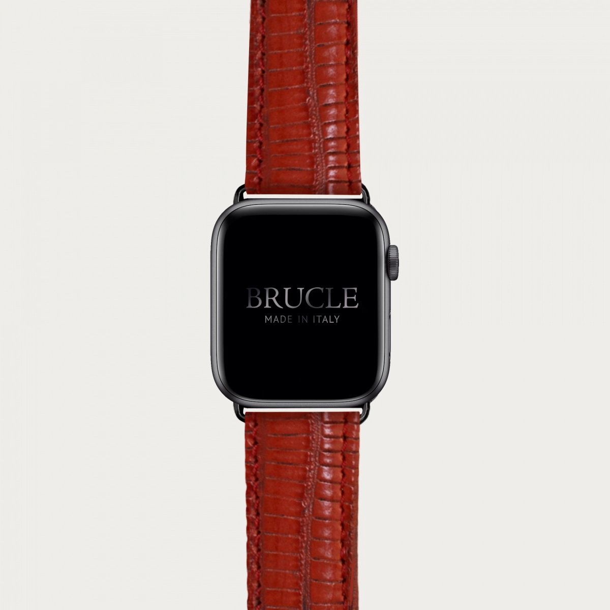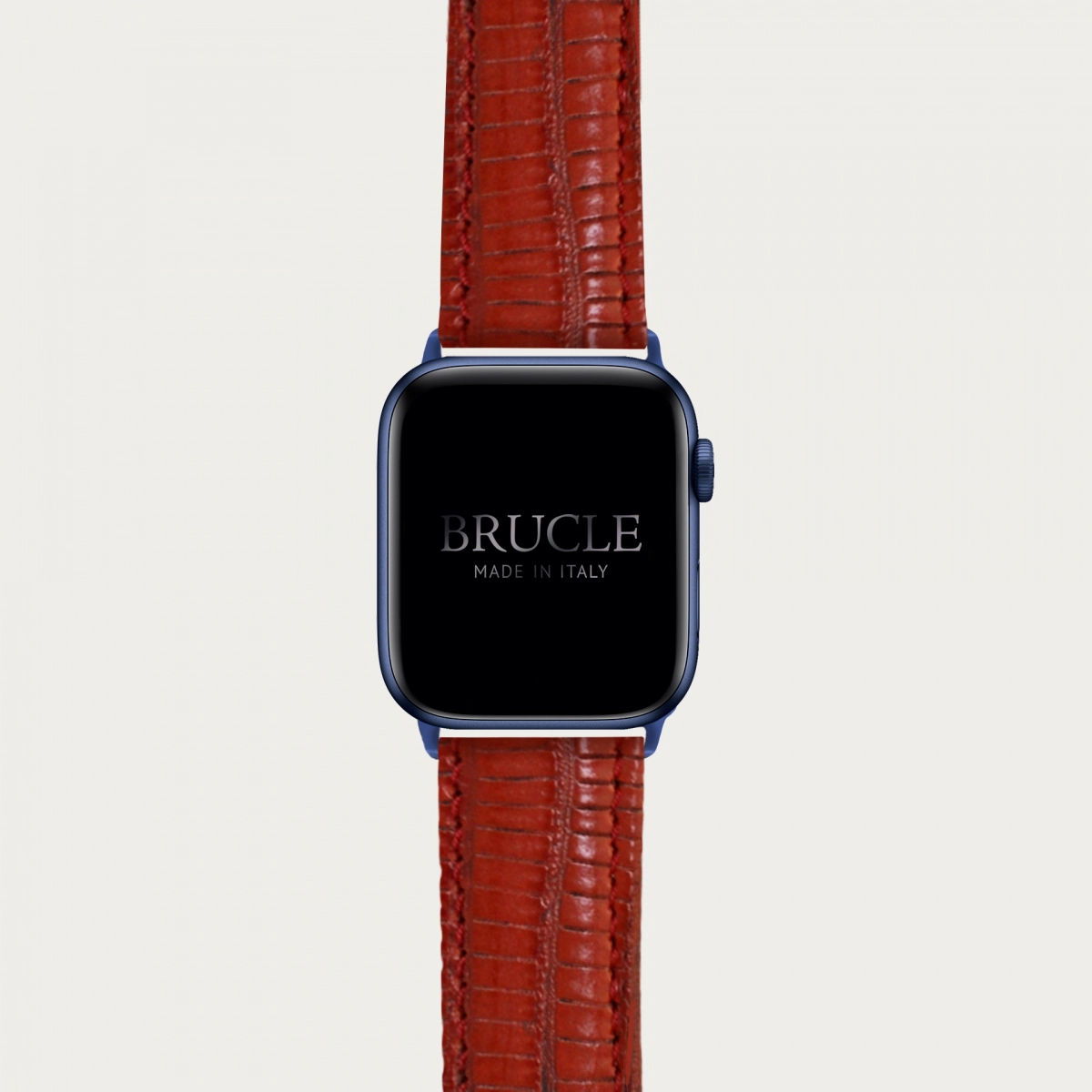 Cinturino rosso in pelle stampata per orologio, Apple Watch e Samsung Galaxy Watch