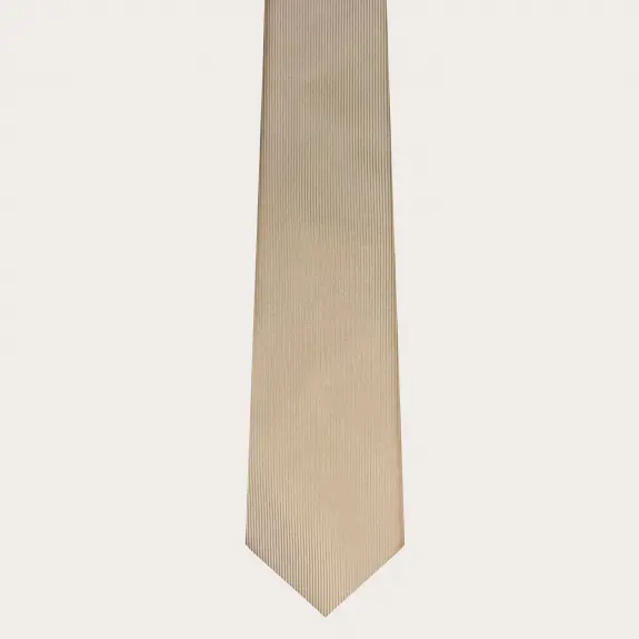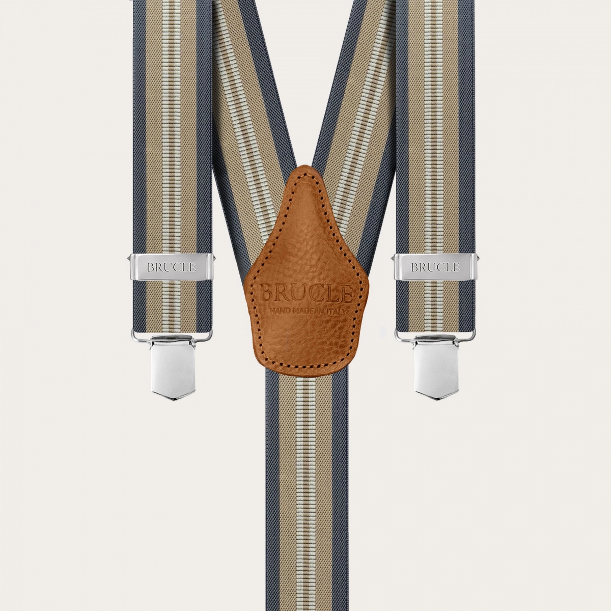 Aggiungi un tocco di eleganza al tuo guardaroba con il nostro esclusivo set bretelle con clip e cravatta classica a 3 pieghe. Le bretelle, caratterizzate da un motivo fantasia rigata e dotate di clip regolabili e resistenti, assicurano una vestibilità comoda e stabile. La cravatta da 8 cm in color champagne, realizzata in pura seta proveniente dal distretto di Como, dona al tuo look un tocco di raffinatezza.