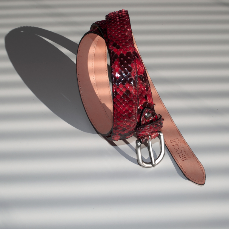 Cintura in pelle di pitone H25 con fibbia lucida, rosso