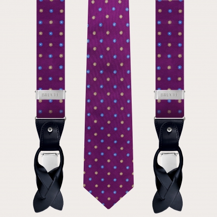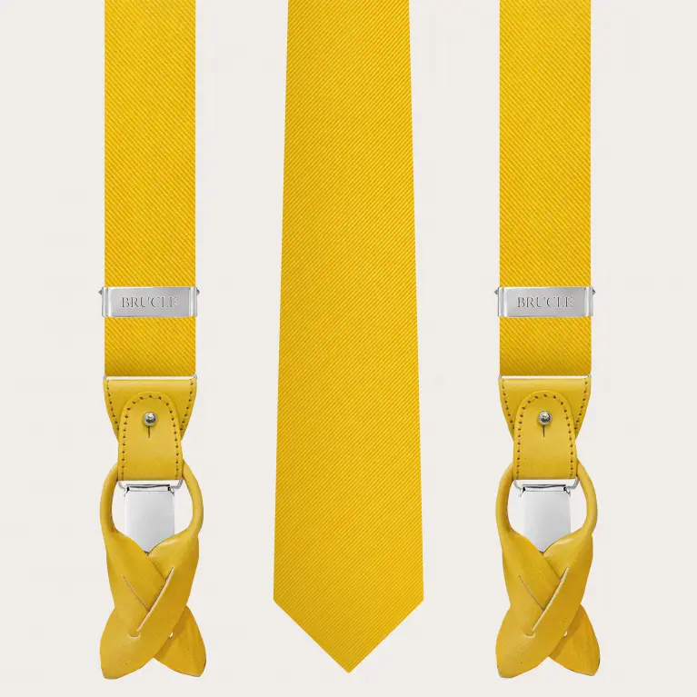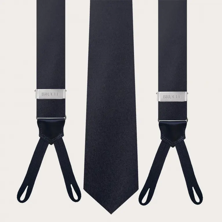 Set elegante da cerimonia composto da cravatta, bretelle larghe 36 mm con asole e pochette in seta italiana grigio melange. Perfetto per outfit formali e strutturati, con un tocco di classe senza tempo.
