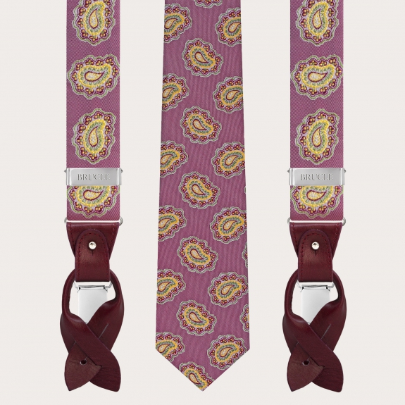 Pacchetto Bretella a Y bordeaux puntaspillo e papillon in seta coordinato