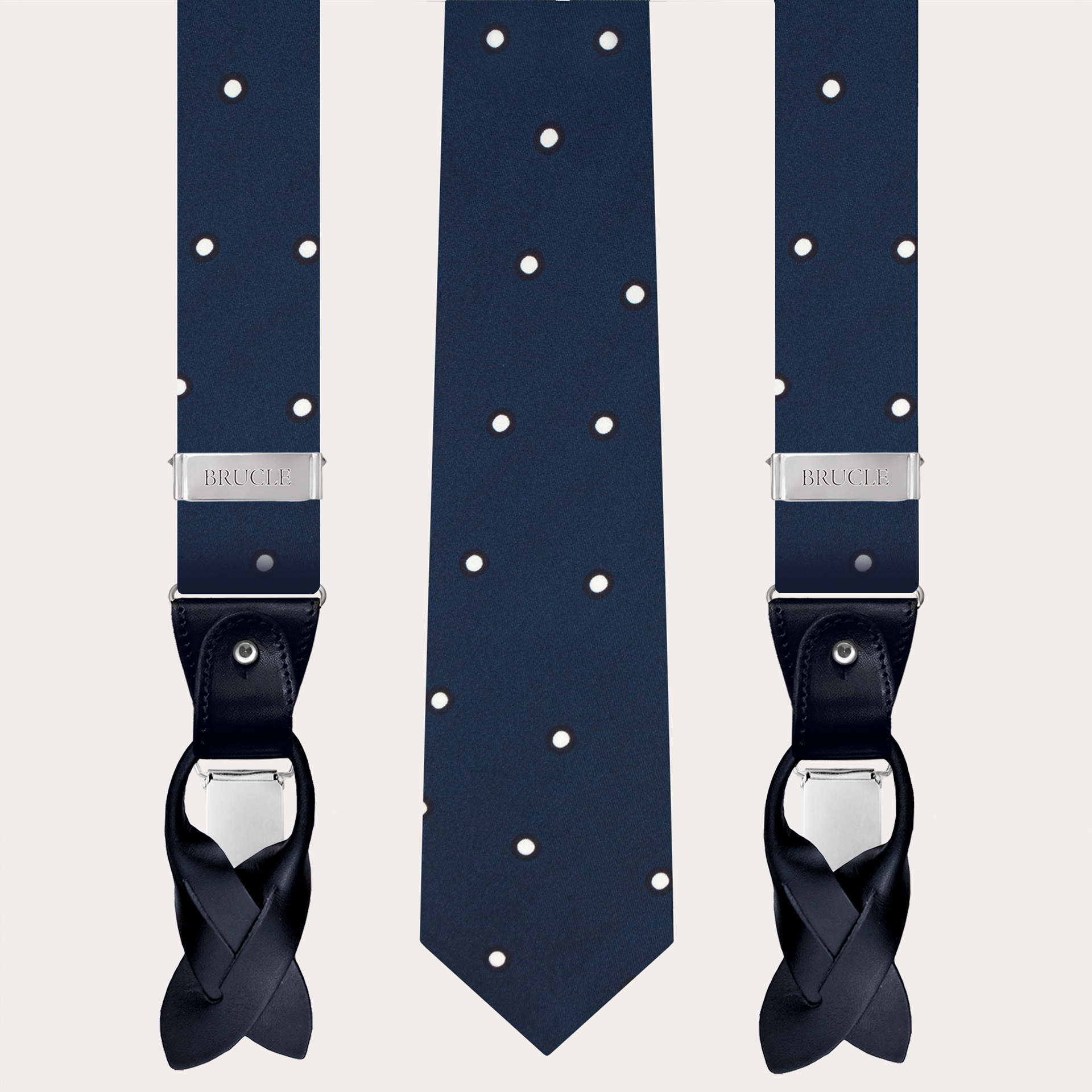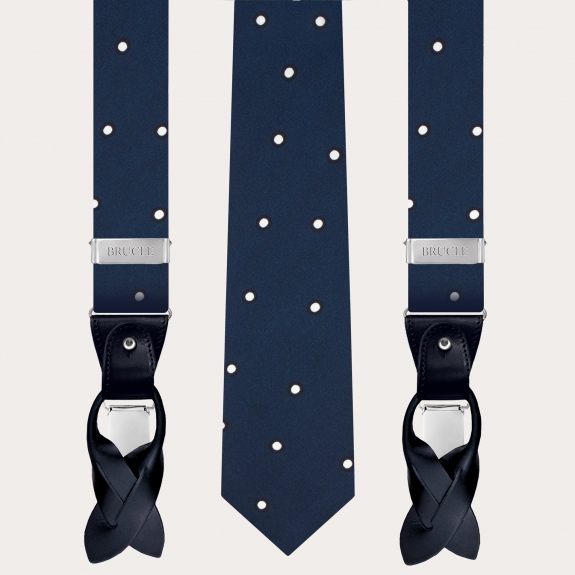 Scopri le bretelle uomo eleganti Brucle in seta jacquard a diamante con design puntaspillo blu, un gioiello di maestria artigianale che esprime il vero Made in Italy.