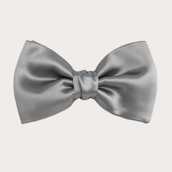 Pacchetto composto da bretelle e papillon in raso di seta grigio.