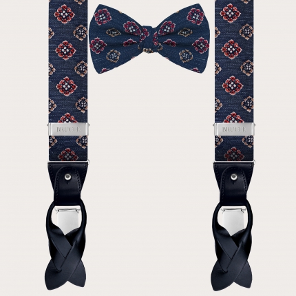 Set coordinato di bretelle e papillon, raso di seta azzurro
