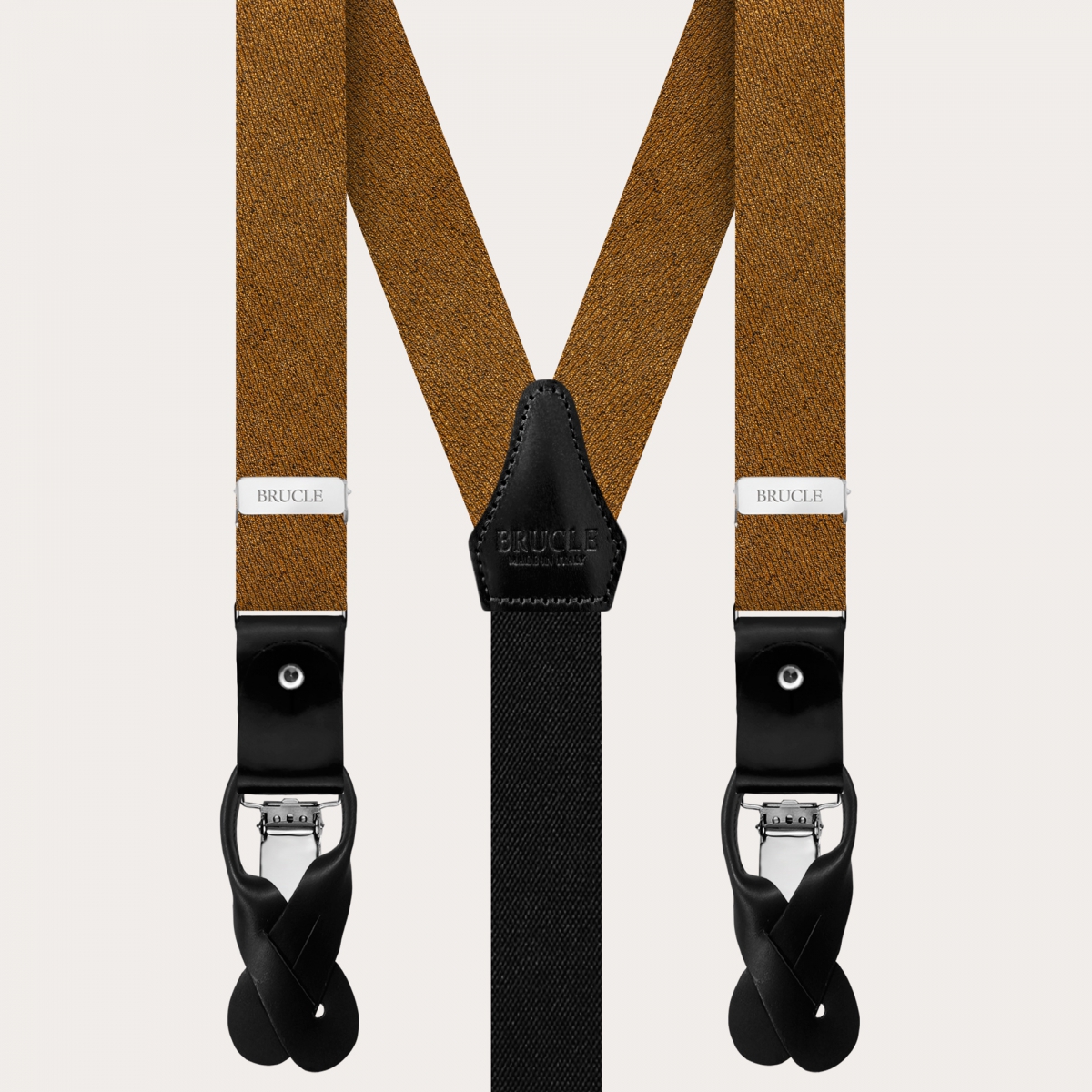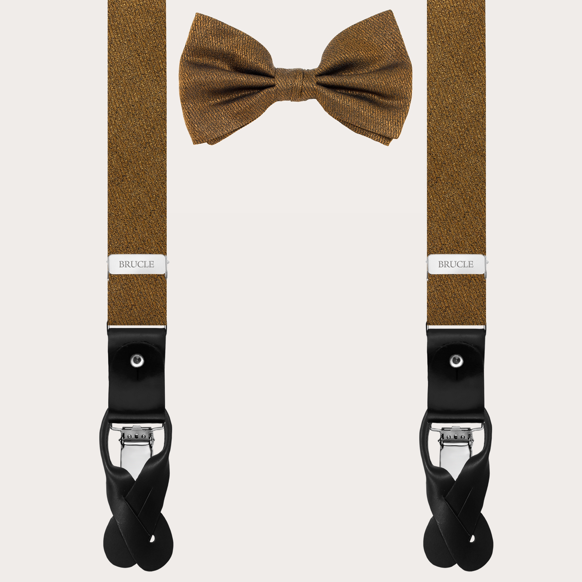 Brucle favorite_border favorite Pacchetto Bretelle con clip oro e cravatta coordinate in seta blu navy Prezzo 175,00 €
