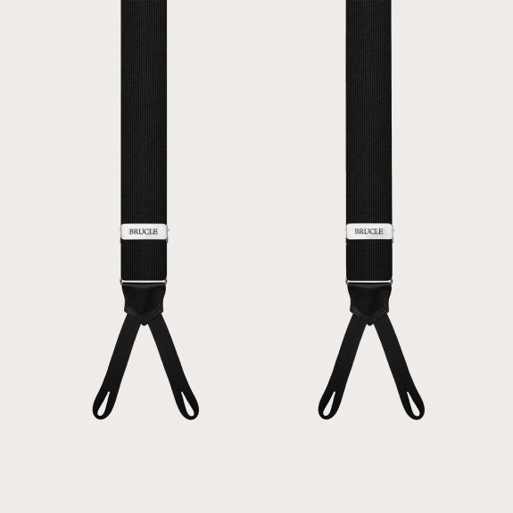 Le bretelle nere in seta per bottoni sono realizzate in seta 100%, un materiale morbido e confortevole che si adatta perfettamente alla figura. Sono disponibili in diverse misure per adattarsi a qualsiasi corporatura.