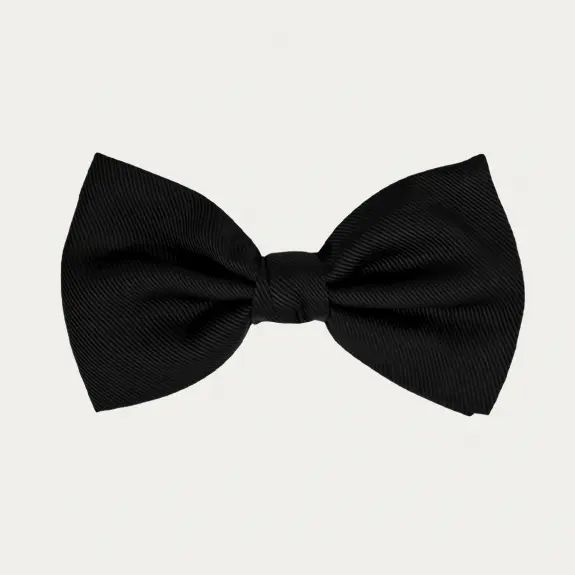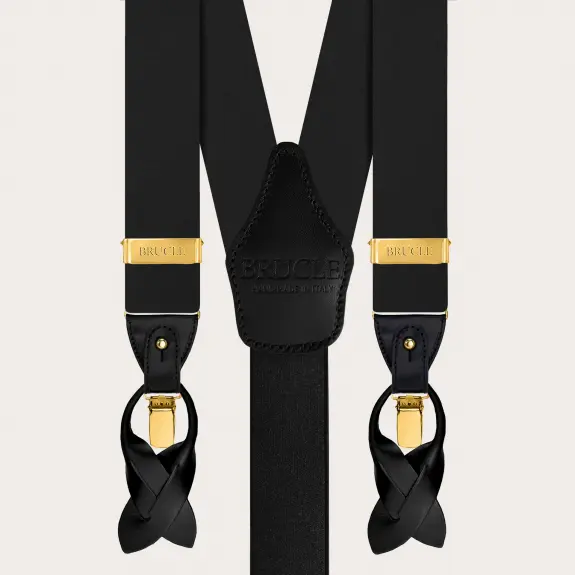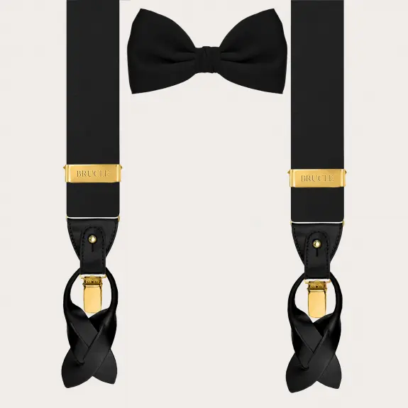 Set nero in raso di seta lucido papillon e bretelle con clip oro