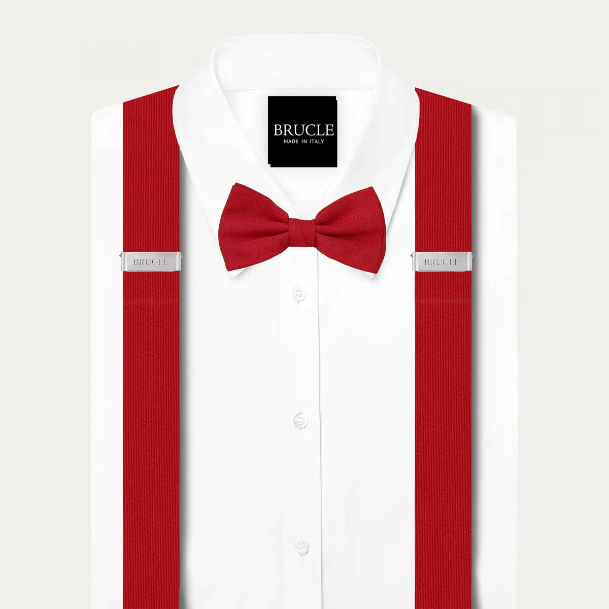 Scopri l'elegante set abbinato di seta bretelle e papillon rossi: un ensemble perfetto per le cerimonie e i tuoi eventi importanti. Un set facile da abbinare, in grado di elevare il tuo look donandogli un colore brillante.