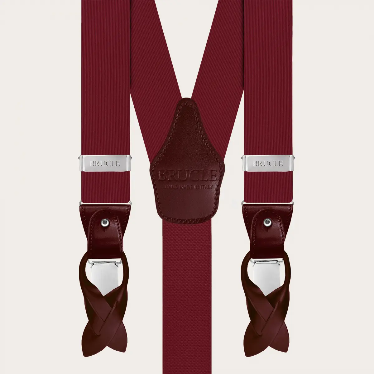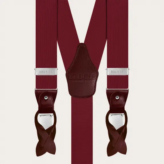 Scopri l'elegante set abbinato di seta bretelle e papillon bordeaux: un ensemble perfetto per le cerimonie e i tuoi eventi importanti. Il colore bordeaux, raffinato ed elegante, eleva il tuo look con una sfumatura unica e sofisticata. Personalizzabili con incisioni su clip e parti in pelle.