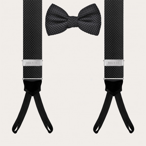 Set coordinato bretelle per bottoni e papillon puntaspillo nero