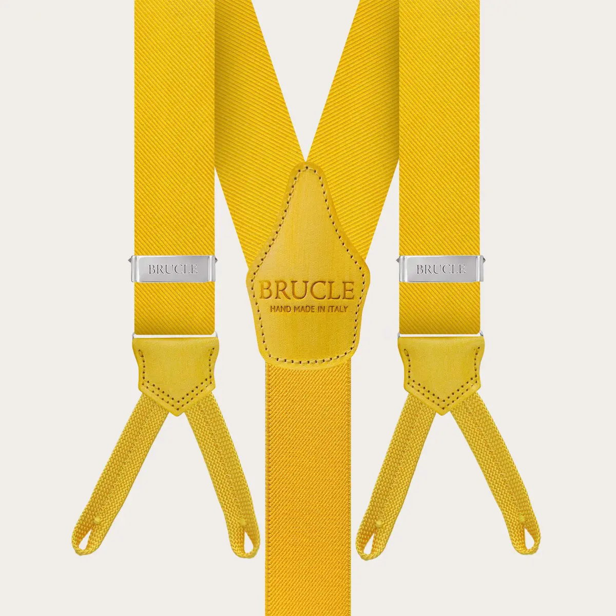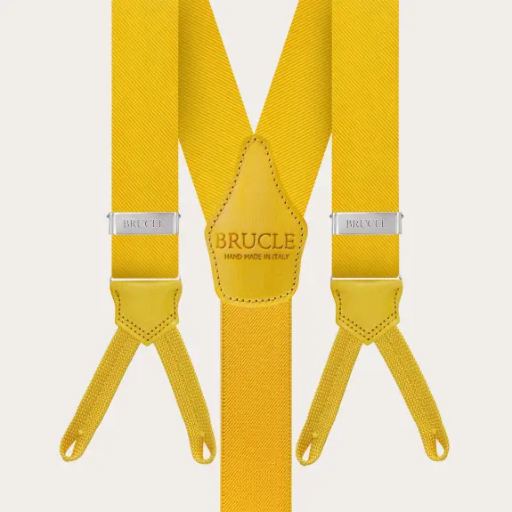 Set coordinato bretelle per bottoni, papillon e pochette in seta, giallo
