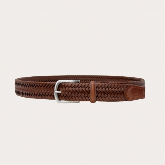 Cintura intrecciata elastica extra lunga marrone e cognac in cuoio rigenerato