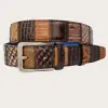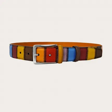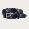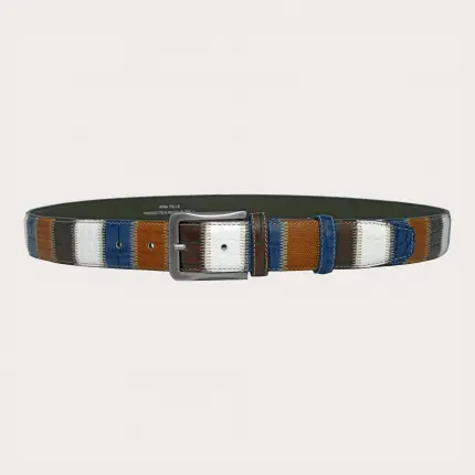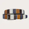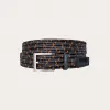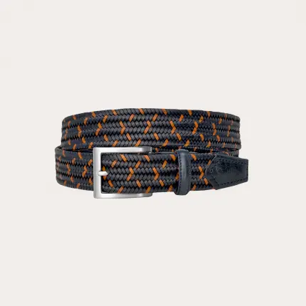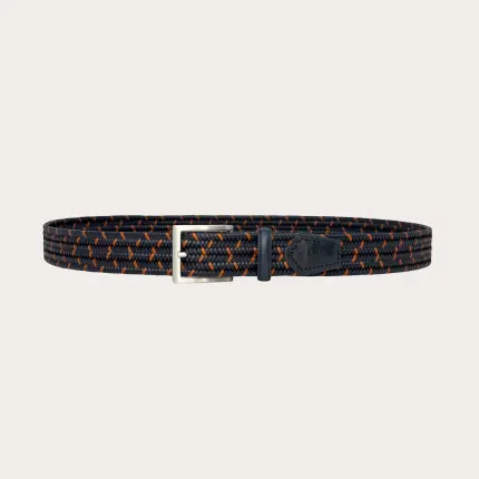 Cintura extra lunga elastica intrecciata blu arancio e beige