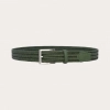 Cintura elastica nera intrecciata extra lunga in pelle rifinita con una fibbia vintage nichel free in ottone pieno con finitura argento America, fatta a mano in Italia