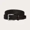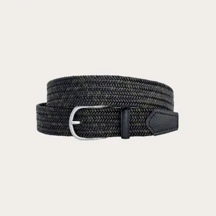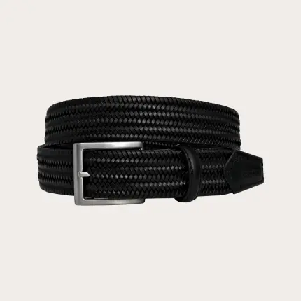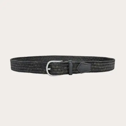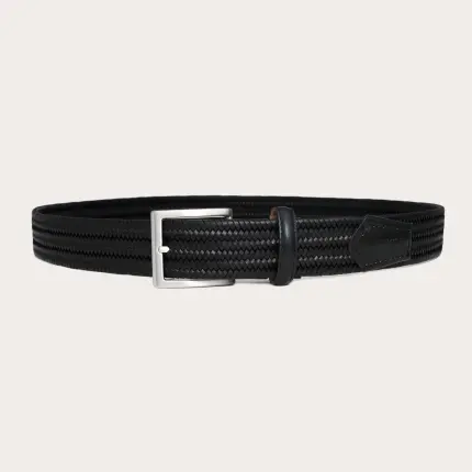 Cintura nera extra lunga elastica intrecciata in cuoio, nichel free