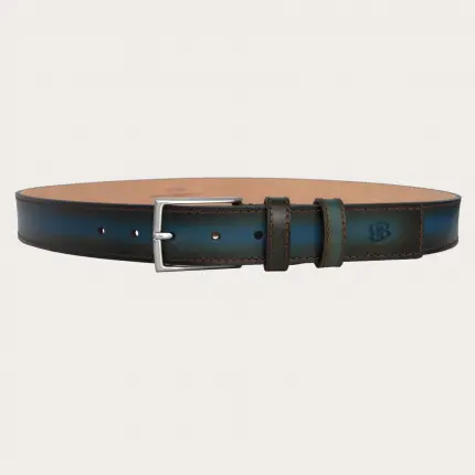 Cintura extra lunga colorata a mano blu sfumata marrone