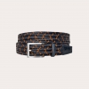 Cintura extra lunga elastica intrecciata blu arancio e beige