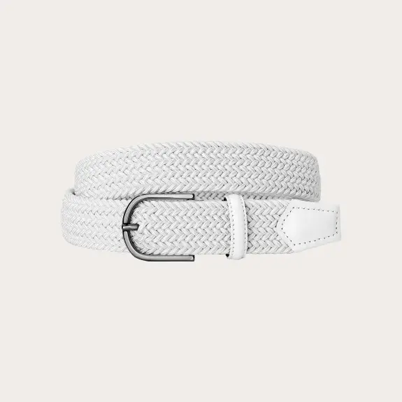 Cintura elastica intrecciata bianca per taglie comode con una lughezza totale di 165 cm, corrispondenti ad un girovita di 150 cm.