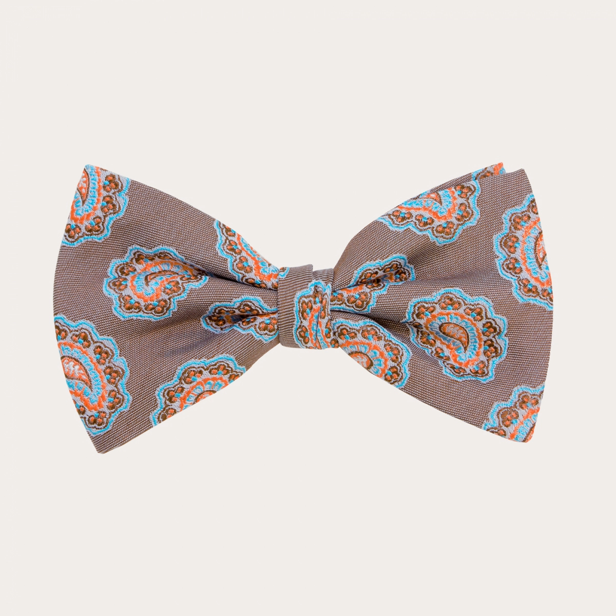Esclusivo papillon in seta con fantasia paisley, tortora