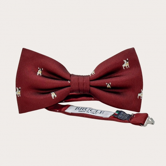 Elegante papillon rosso in seta jacquard Brucle, un accessorio artigianale, fatto a mano e di alta qualità. Vivi l'eccellenza del Made in Italy con un design classico e colorato per completare il tuo look.