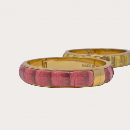 Una collezione esclusiva di bracciali donna realizzata con pregiata pelle di pitone tamponata a mano. Colori accesi e interno in zama oro per dei preziosi bracciali in pelle da regalare o regalarsi. Guarda tutte le varianti della linea bracciali donna BRUCLE e scegli un accessorio unico nel suo stile.