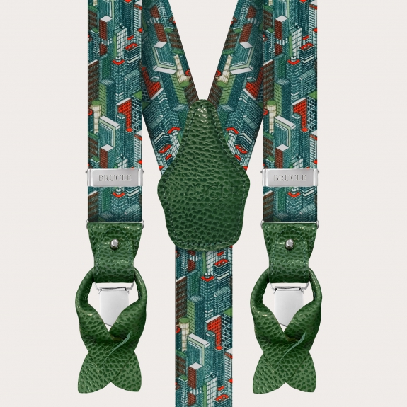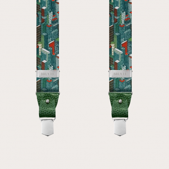 Bretelle fantasia cachemire verde uso clip o bottoni