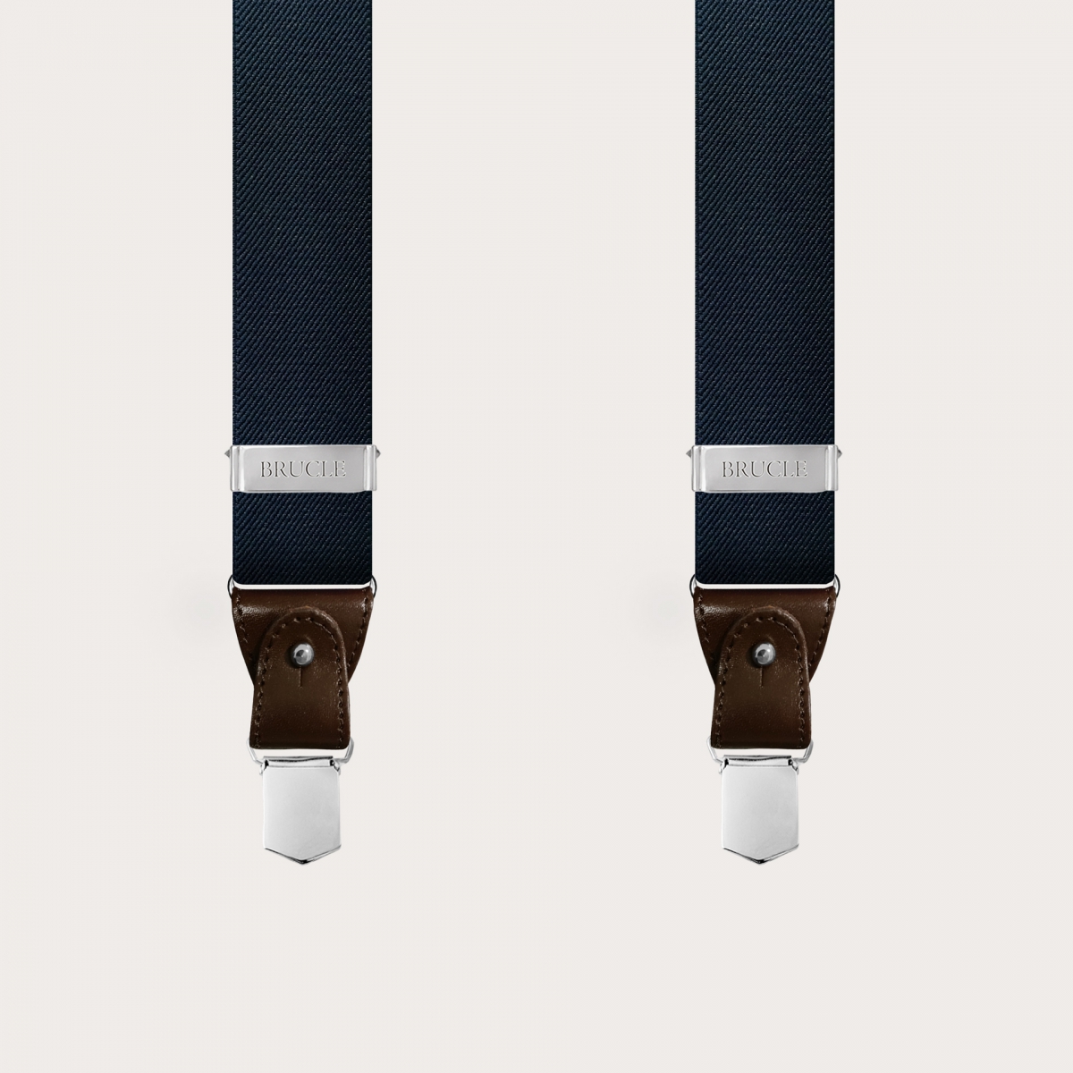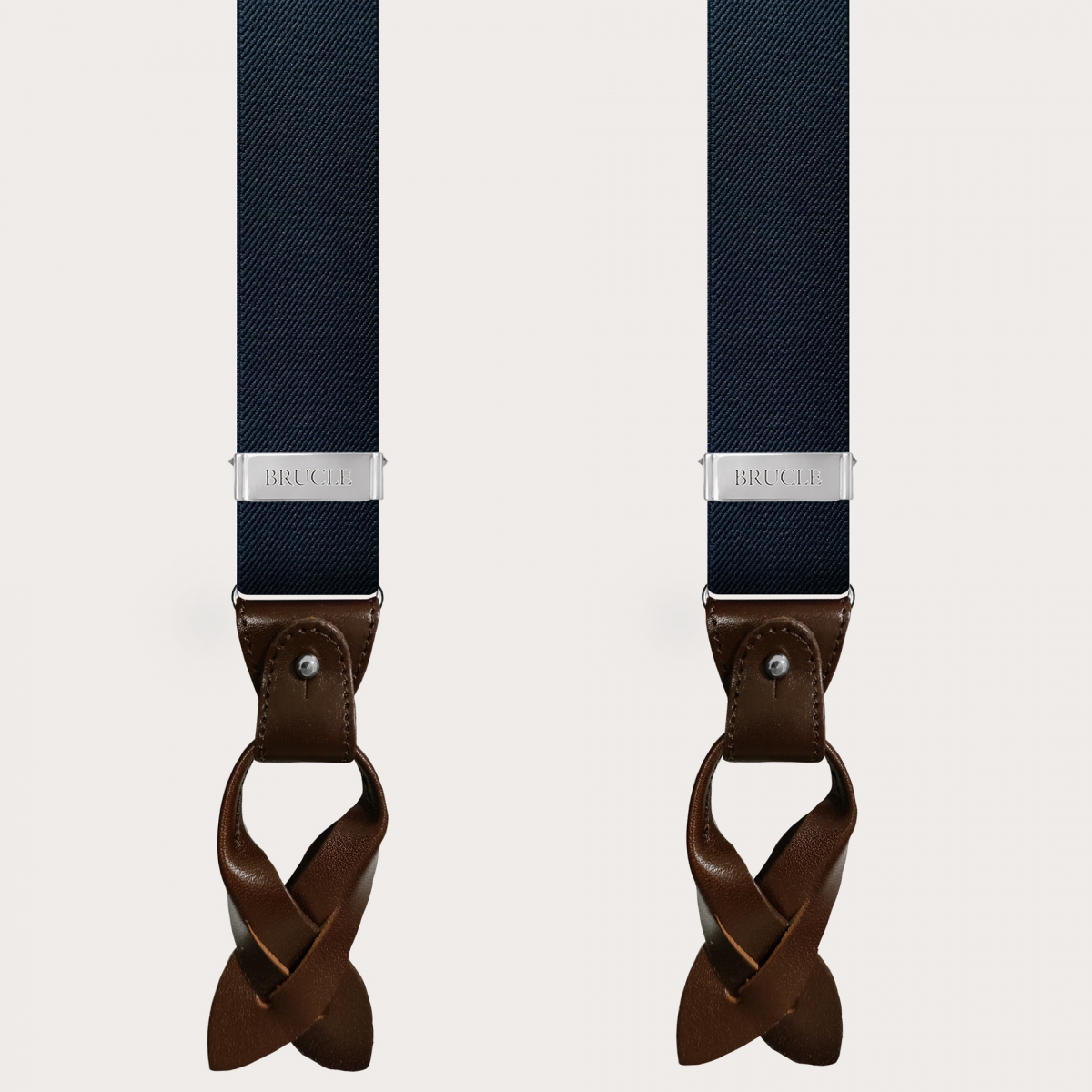 Eleganti bretelle nichel free, blu con pelle testa moro