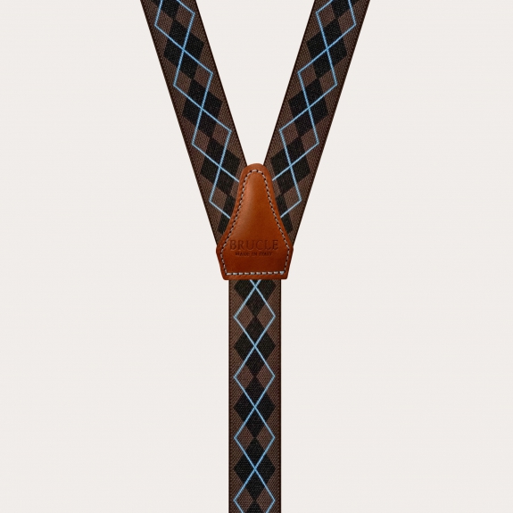 Bretelle unisex fantasia tartan scozzese nei toni del marrone. Un modello semplice e pratico, adatto a un look sportivo e casual.