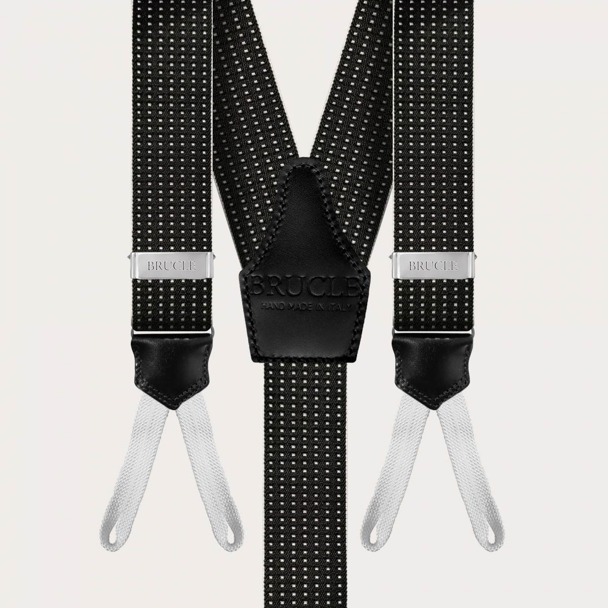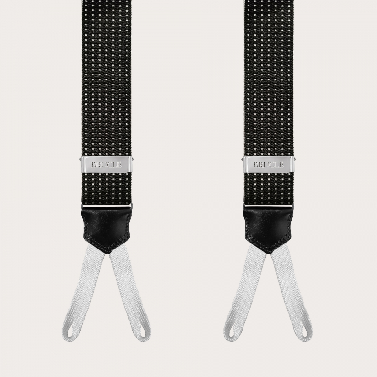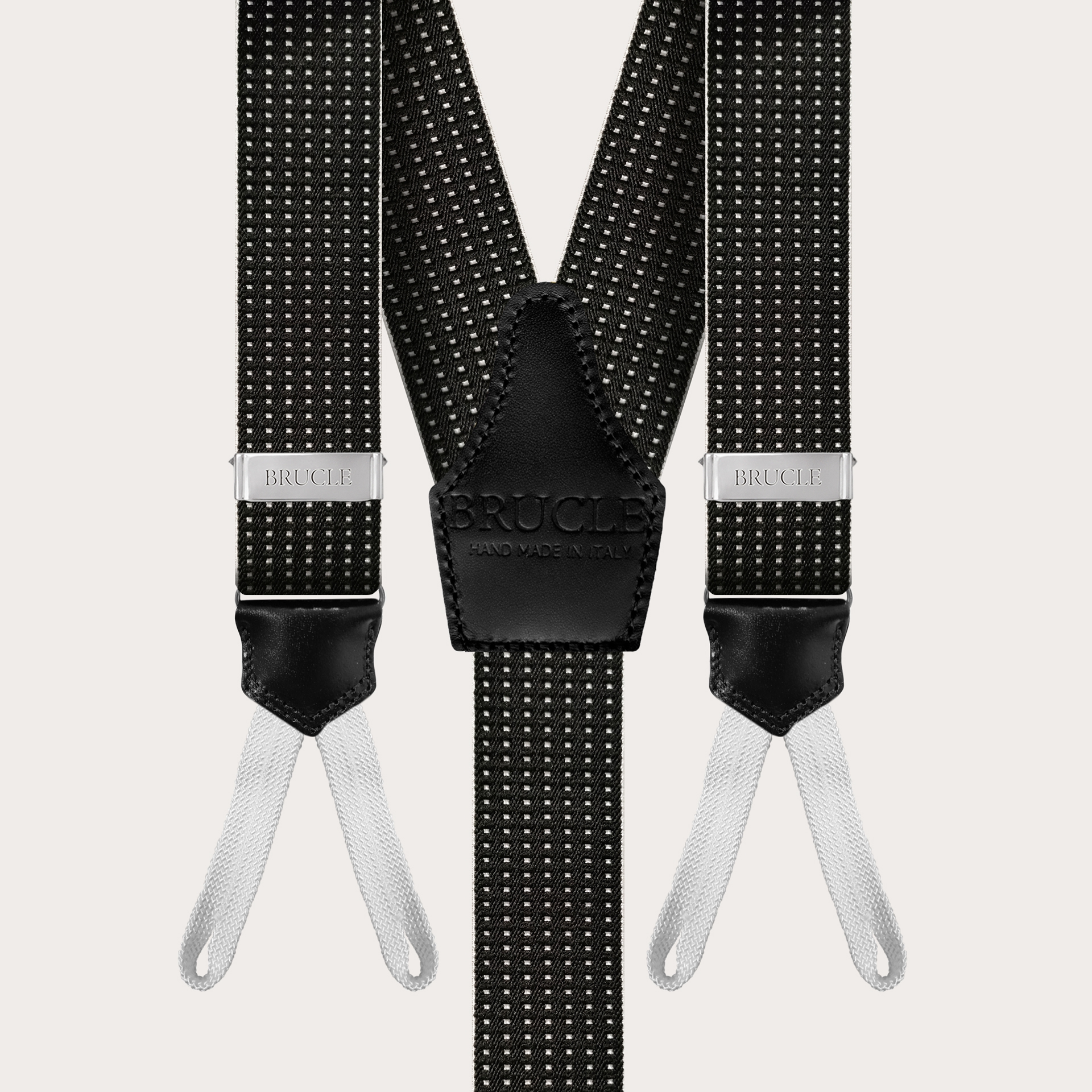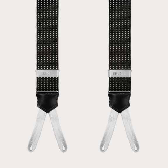 Bretelle uomo in seta nere puntaspillo con asole per bottoni