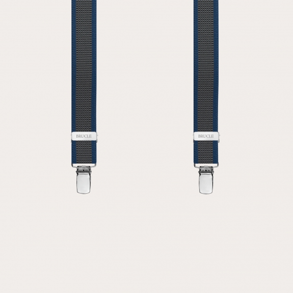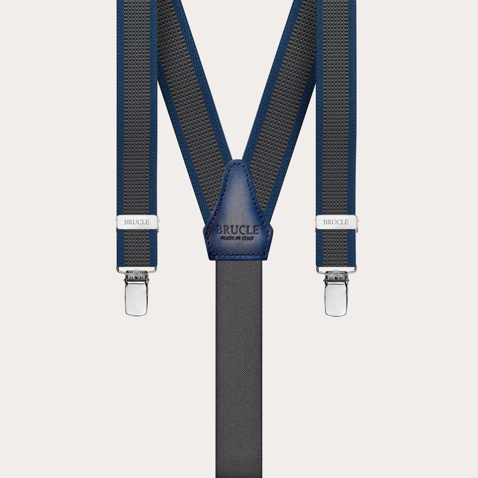 Colore: grigio e blu; parti in pelle: grigio sfumato blu