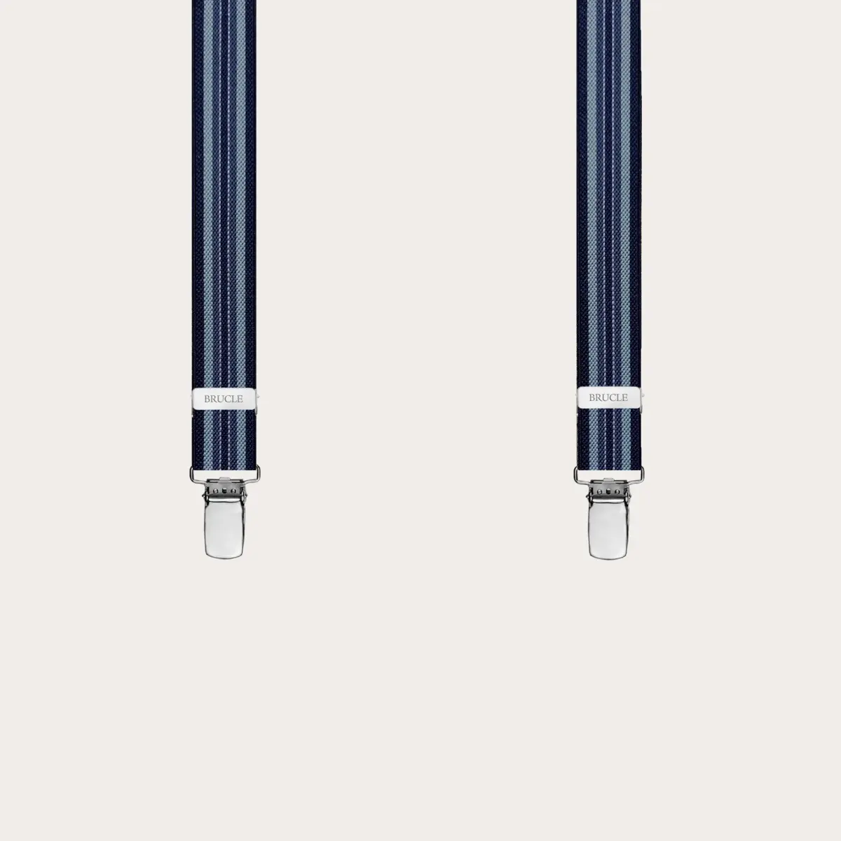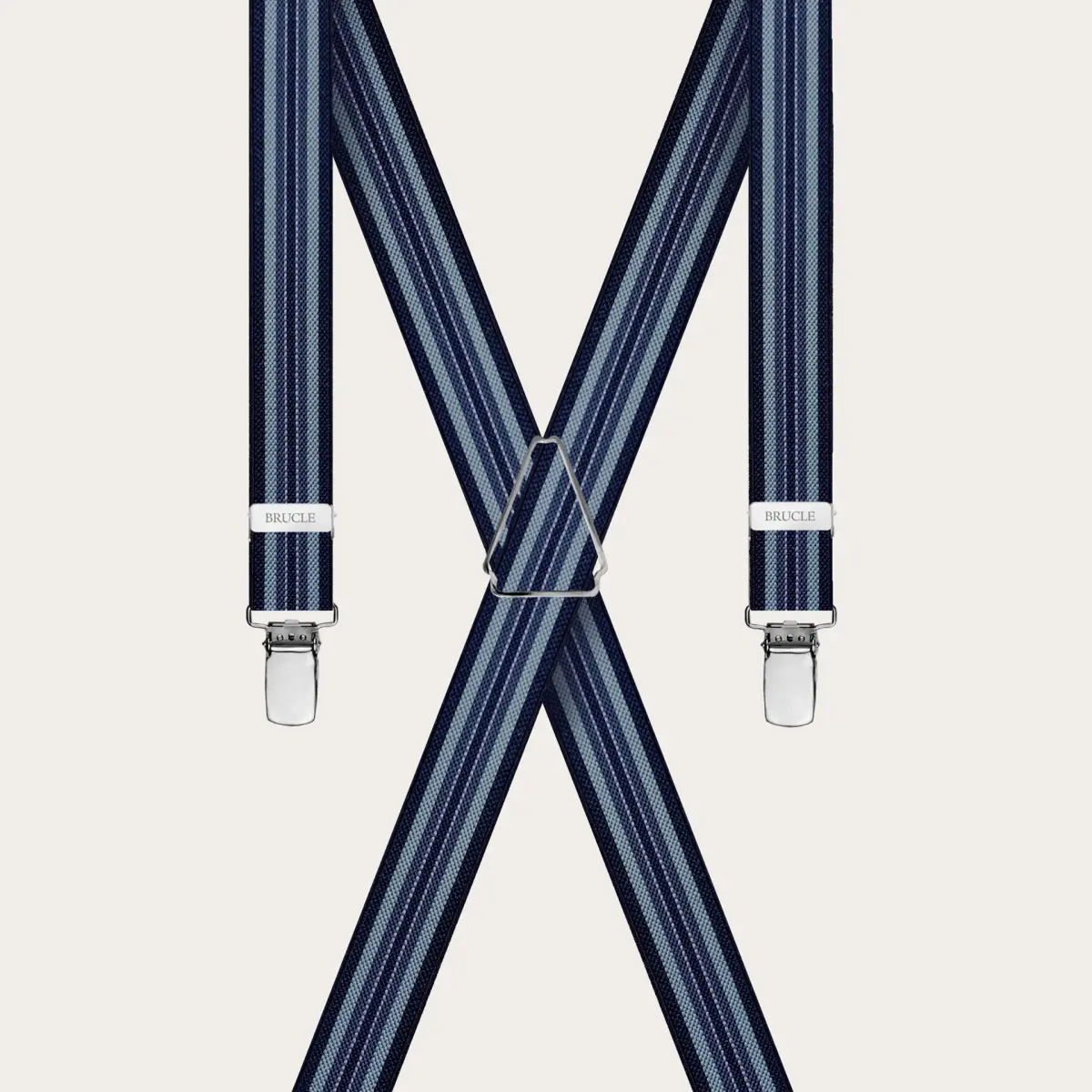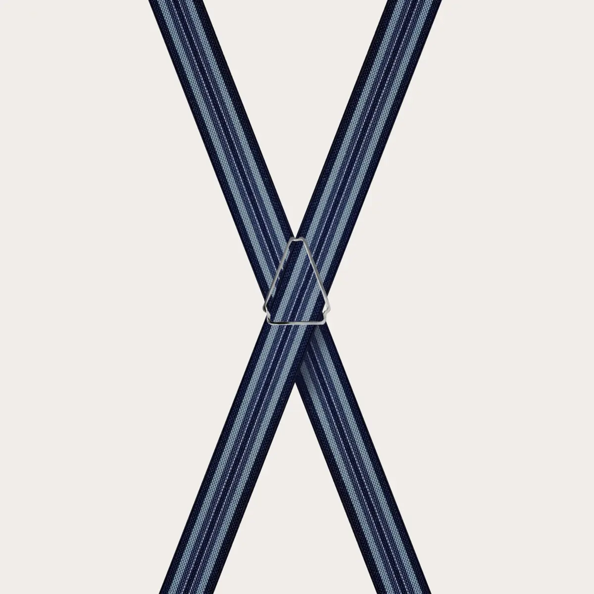 Bretelle a X elastiche a righe, toni di blu e azzurro