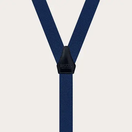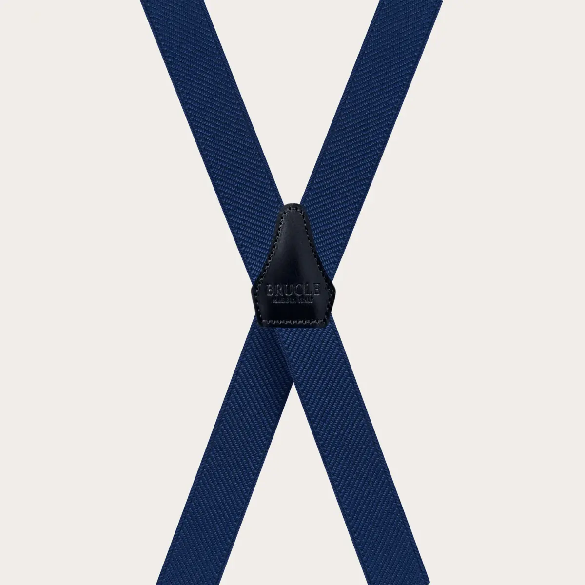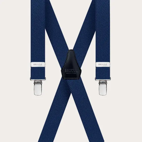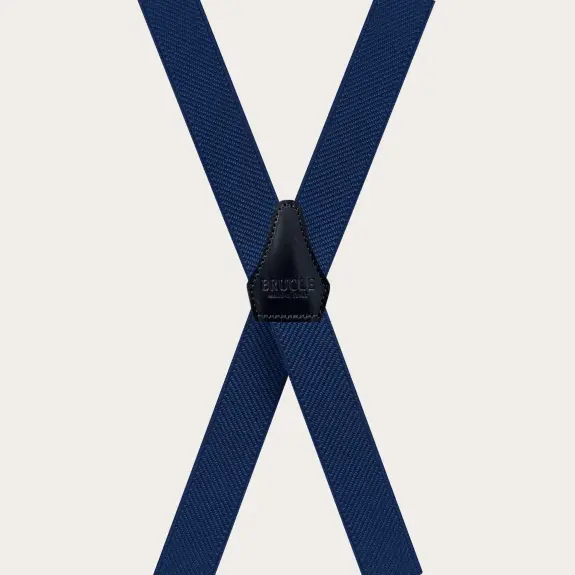 Eleganti bretelle a X, color blu navy con parti in pelle in tinta.