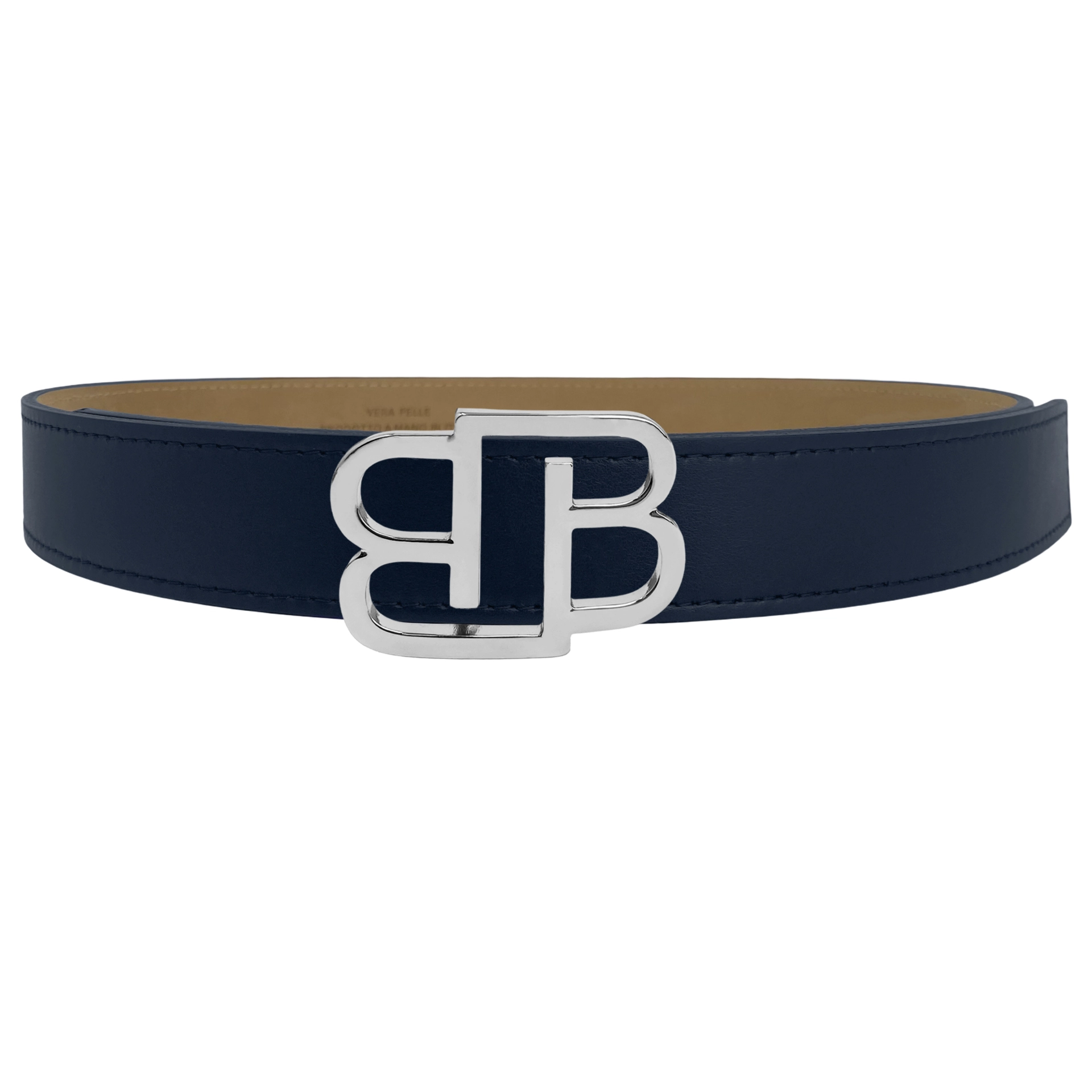 Cintura blu in cuoio fiorentino con fibbia BB nichel free lucida