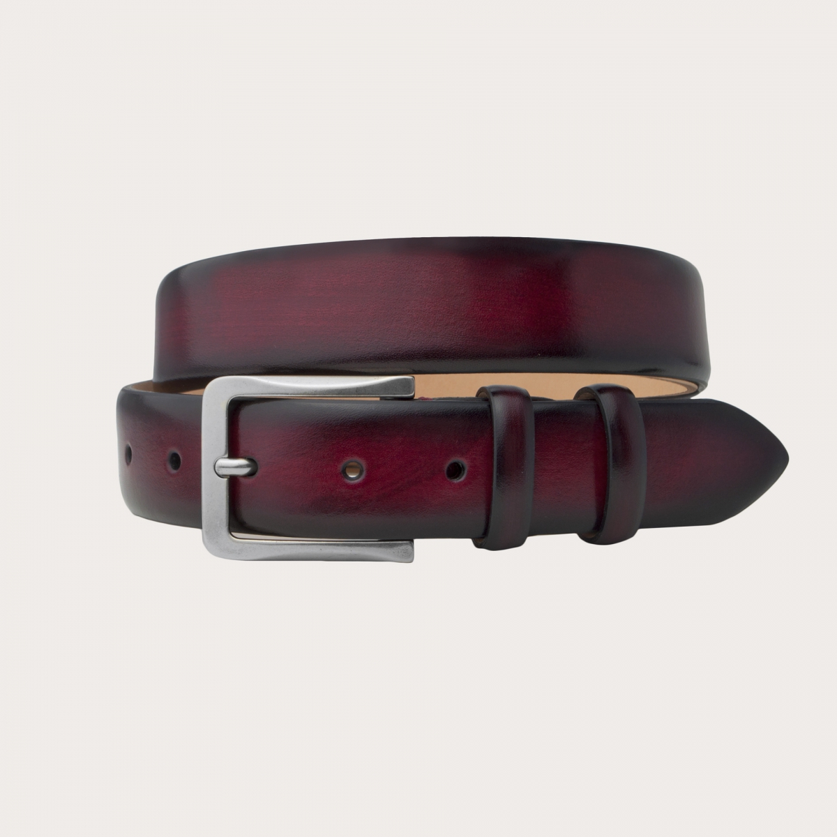 Esclusiva cintura in cuoio tamponato e sfumato a mano, bordeaux