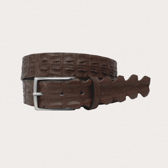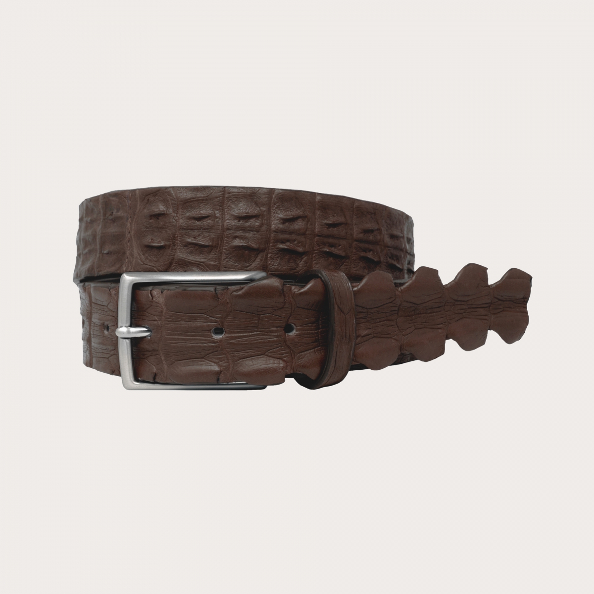 Cintura sportiva in vera pelle di coccodrillo, testa moro