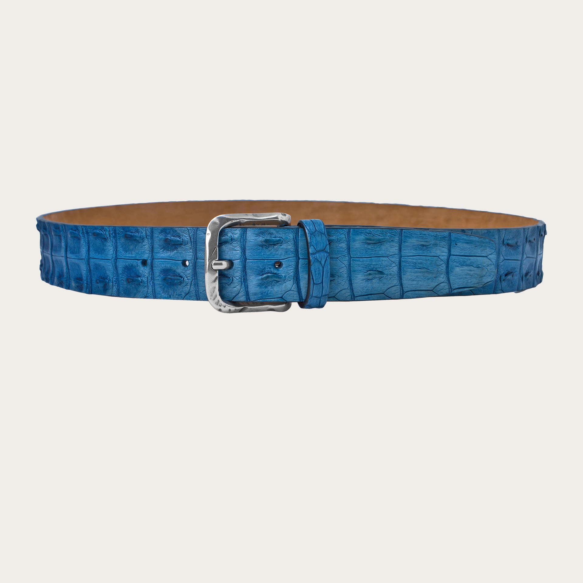 Cintura di coccodrillo color cobalto colorata a mano