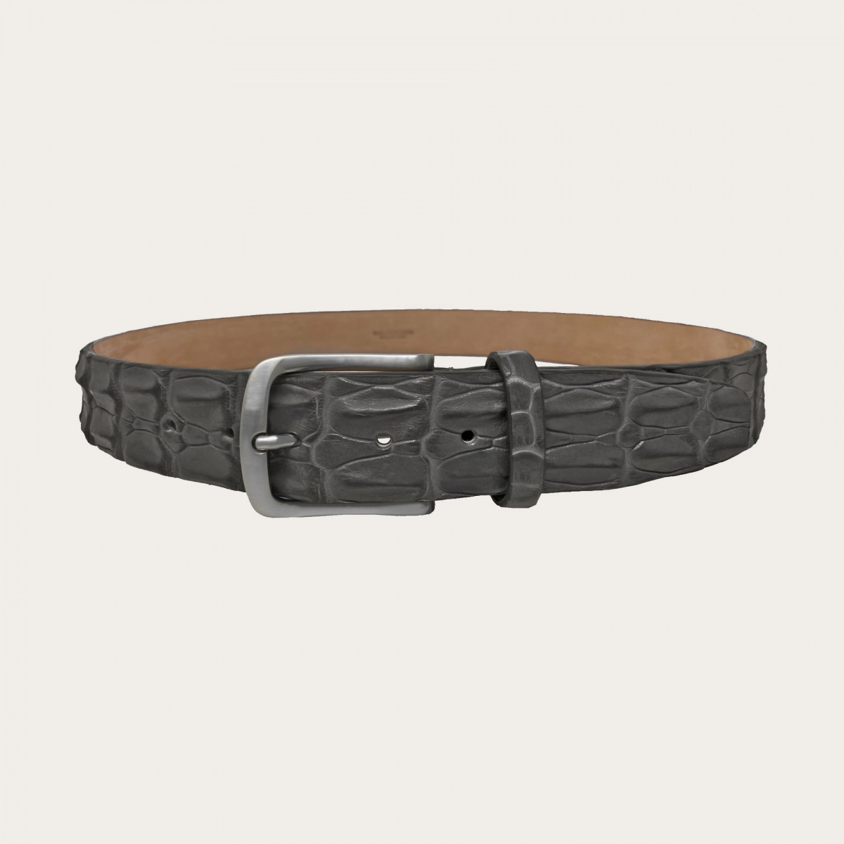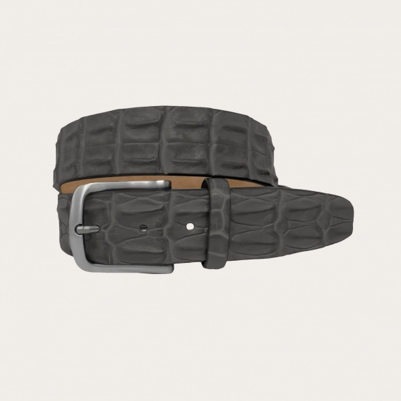 Cintura sportiva in vera pelle di coccodrillo, grigio piombo