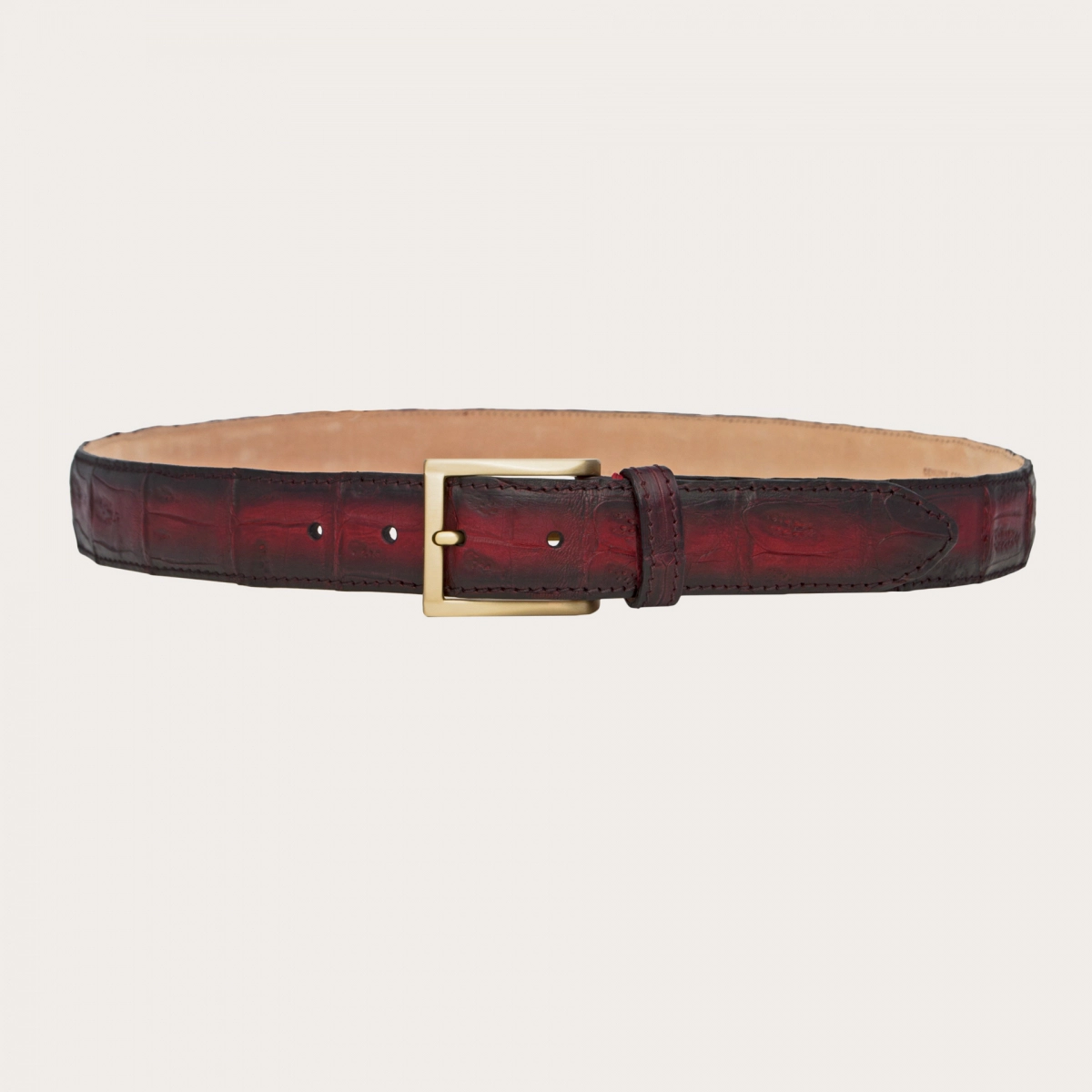 Cintura uomo e donna patinata a mano nickel free in coda di coccodrillo, toni di bordeaux