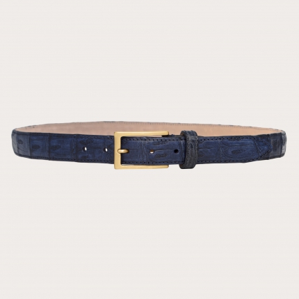 Cintura in fianco di coccodrillo blu con cuciture in tinta