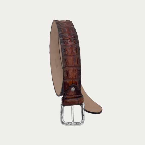 Cintura sportiva in vera pelle di coccodrillo, testa moro