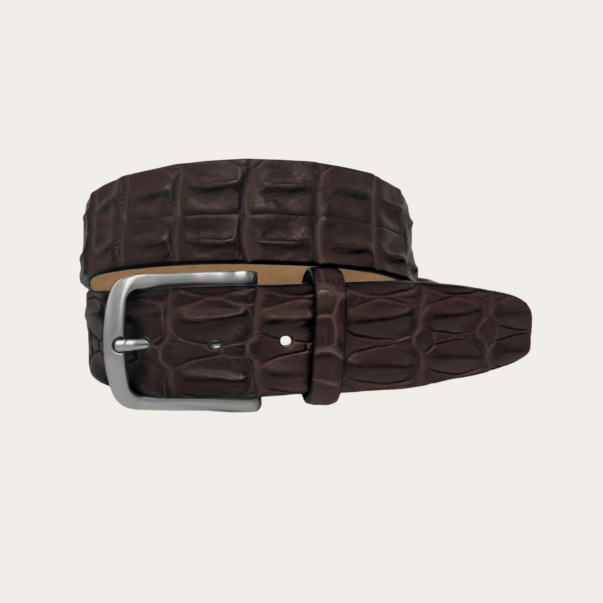 Cintura sportiva in vera pelle di coccodrillo, testa moro