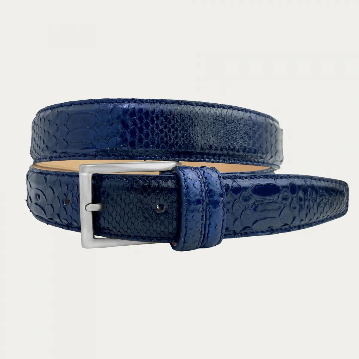 Elegante cintura in pelle di pitone blu lucido, senza nichel