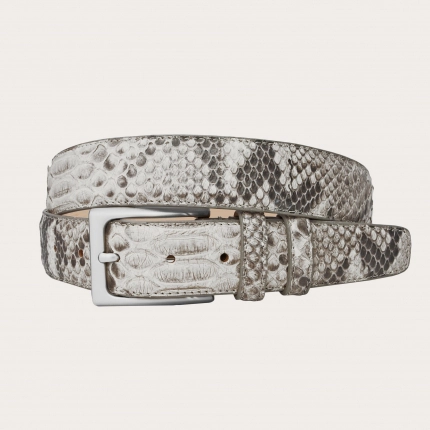 Cintura bianca in pitone con un'altezza di 4 cm che rende questo modello ideale per un look casual e ricercato.