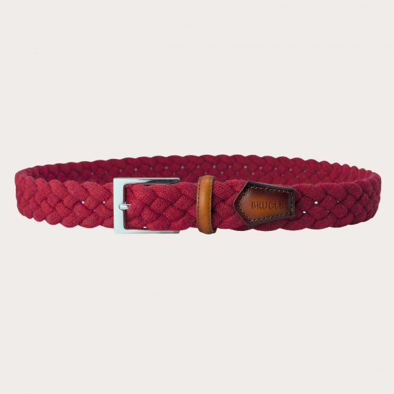 Cintura rossa in cotone elastico intrecciato, con fibbia in ottone ricoperta da morbida pelle nella stessa colorazione. Confortevole e facilmente abbinabile.