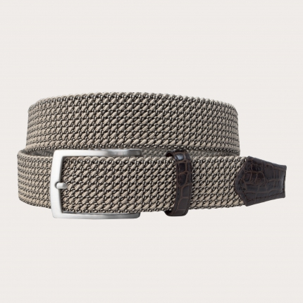 Cintura intrecciata elastica marrone in cuoio rigenerato