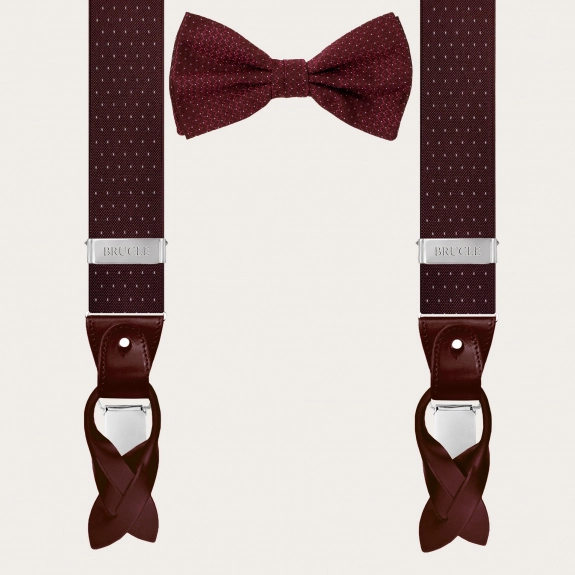 Pacchetto Bretella a Y bordeaux puntaspillo e papillon in seta coordinato