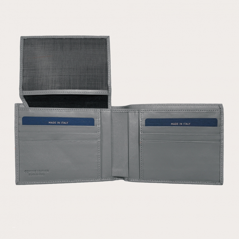 Portafoglio uomo con portamonete in pelle grigia e verde