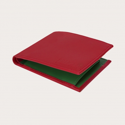 Portafoglio compatto rosso in pelle bottalata con interno blu