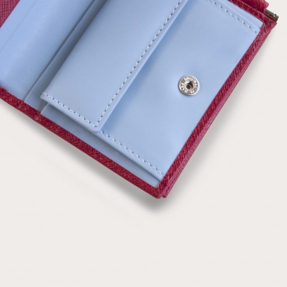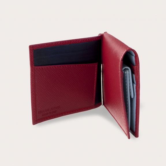 Mini portafoglio compatto in pelle saffiano con fermasoldi e portamonete, marrone e arancio