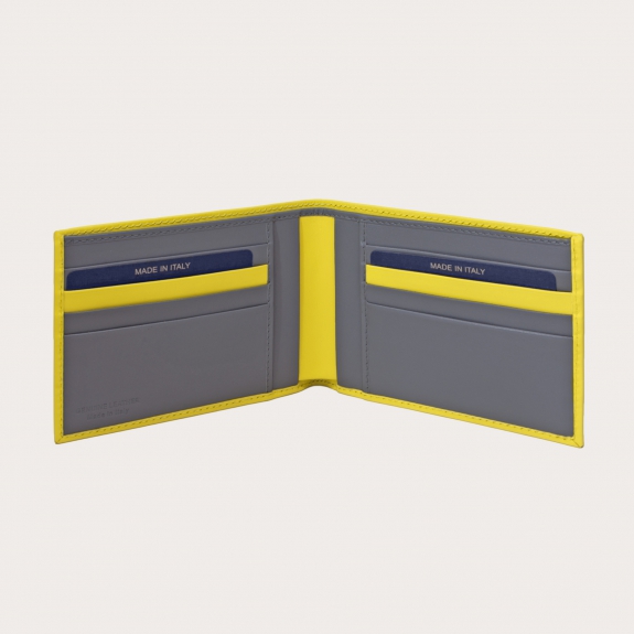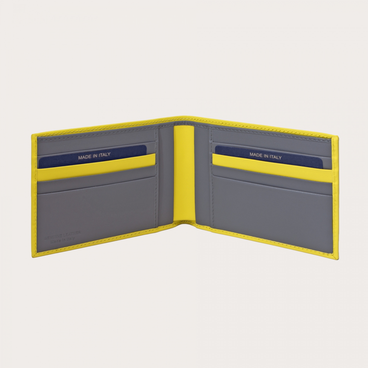 Questo portafoglio uomo blu con interno giallo è un prodotto artigianale di alta qualità, realizzato in morbida pelle di vitello e dotato di portamonete - perfetto per chi ama portarsi appresso tutto l'essenziale senza rinunciare allo stile. Ideale come idea regalo per un uomo moderno che apprezza l'eleganza e la qualità italiana: personalizzalo con incisioni sia interne che esterne, rendendolo un oggetto unico e raffinato!